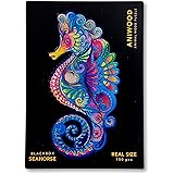 ANIWOOD Puzzle de Madera de Animales. Tapa troquelada, Caja a tamaño Real del Puzzle. 3 Modos de dificultad, Elemento Decorativo. Piezas únicas Originales de Animales (Medium, Caballito de Mar)