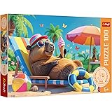 Trefl - The Treflik Family, Relajación al Estilo Capibara - Rompecabezas de 100 Piezas - Rompecabezas Coloridos con Animales, Entretenimiento Creativo, diversión para niños a Partir de 5 años