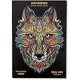 ANIWOOD Puzzle de Madera de Animales. Tapa troquelada, Caja a tamaño Real del Puzzle. 3 Modos de dificultad, Elemento Decorativo. Piezas únicas Originales de Animales (Medium, Lobo)